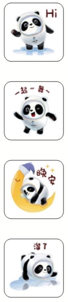 熊貓形象與富有超能量的冰晶外殼相結(jié)合,冬奧會吉祥物冰墩墩體現(xiàn)的是冬季冰雪運(yùn)動和現(xiàn)代科技的特點(diǎn)。從“打招呼”、“一起舞”、“溜了”等微信動畫表情中可以感受到冰墩墩敦厚、活潑的形象特點(diǎn),而夜空中飛翔的動畫表情則展現(xiàn)了冰墩墩的十足科技感。