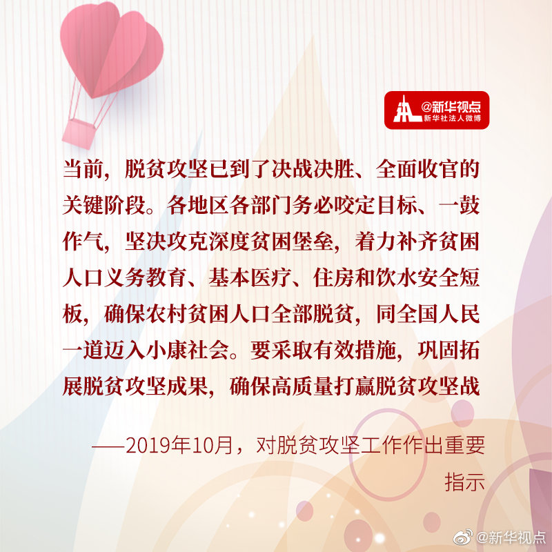讓貧困人口和貧困地區(qū)同全國一道進入全面小康社會,是中國共產(chǎn)黨的莊嚴(yán)承諾,也是習(xí)近平總書記心里最牽掛的大事。當(dāng)前脫貧攻堅戰(zhàn)進入決勝的關(guān)鍵階段。在第六個國家扶貧日到來之際,讓我們一起學(xué)習(xí)總書記關(guān)于脫貧攻堅的這些話?!?????