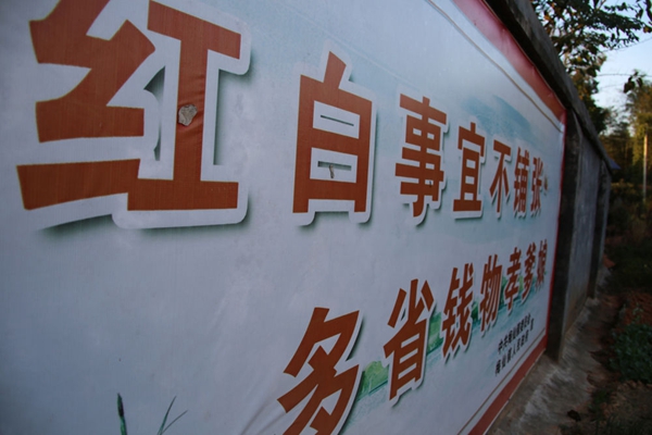 ▲湖南岳陽平江縣梅仙鎮(zhèn)石嶺村“治陋習(xí)、樹新風”標語(11月15日攝)。新華每日電訊記者 謝銳佳 攝