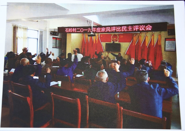 ▲湖南岳陽平江縣梅仙鎮(zhèn)石嶺村家風評比現(xiàn)場(翻拍)。