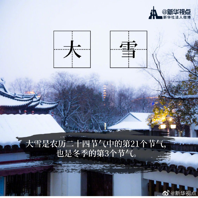 “白雪紛紛何所似?未若柳絮因風起?!苯裉?8時18分迎來“大雪”節(jié)氣。相較于“小雪”節(jié)氣,“大雪”節(jié)氣時,氣溫不斷下降,雪量不斷增大,下雪天數(shù)不斷增加。天氣漸冷,注意添衣保暖。?