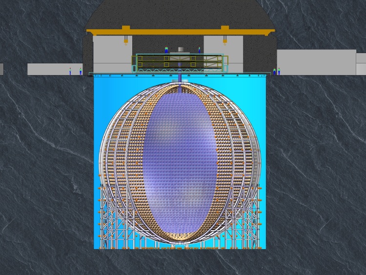 他們將把一個(gè)直徑達(dá)35.4米的有機(jī)玻璃球安裝在廣東省江門(mén)市西南部的打石山中。施工人員已經(jīng)在700多米深的花崗巖下方挖出一個(gè)空洞,作為未來(lái)的實(shí)驗(yàn)大廳。