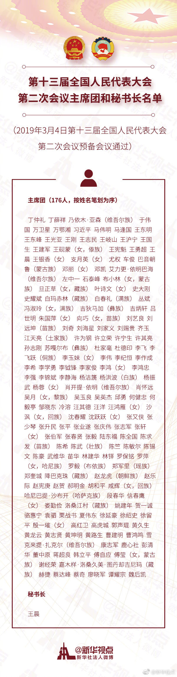 第十三屆全國(guó)人民代表大會(huì)第二次會(huì)議主席團(tuán)和秘書(shū)長(zhǎng)名單