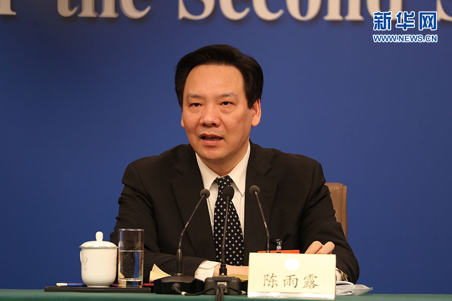 全國政協(xié)十三屆二次會議3月5日15:00在梅地亞中心多功能廳舉行記者會,邀請5位全國政協(xié)委員就“打贏防范化解重大風(fēng)險、精準(zhǔn)脫貧、污染防治三大攻堅(jiān)戰(zhàn)”回答記者提問。圖為全國政協(xié)經(jīng)濟(jì)委員會副主任(經(jīng)濟(jì)界)、中國人民銀行副行長陳雨露回答記者提問。新華網(wǎng)/中國政府網(wǎng) 陳杰 攝