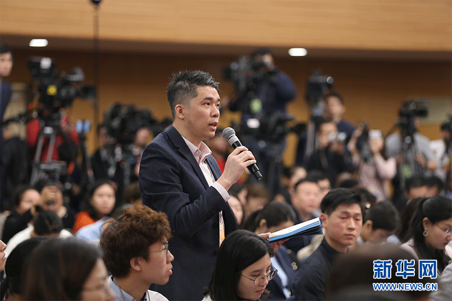 十三屆全國人大二次會議新聞中心3月9日(星期六)10時30分在梅地亞中心新聞發(fā)布廳舉行記者會,邀請商務部部長鐘山、副部長兼國際貿(mào)易談判副代表王受文、副部長錢克明就“促進形成強大國內(nèi)市場 推動全方位對外開放”相關(guān)問題回答中外記者提問。圖為中國日報記者提問。新華網(wǎng)/中國政府網(wǎng) 劉廈 攝