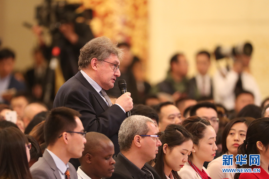 3月15日上午十三屆全國人大二次會議閉幕后,國務(wù)院總理李克強(qiáng)在人民大會堂三樓金色大廳會見采訪十三屆全國人大二次會議的中外記者并回答記者提出的問題。圖為塔斯社記者提問。新華網(wǎng)/中國政府網(wǎng) 劉廈 攝