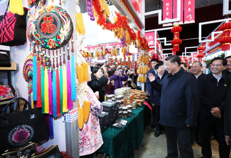 臘月廿六(20日下午),離除夕僅四天,習(xí)近平來到第十四屆中國(guó)昆明新春購(gòu)物博覽會(huì)舉辦地——昆明國(guó)際會(huì)展中心,了解年貨市場(chǎng)供應(yīng)及國(guó)內(nèi)外商品展銷情況,這里被當(dāng)?shù)厝朔Q作“關(guān)上年貨節(jié)”。