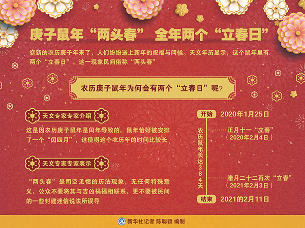 圖表:庚子鼠年“兩頭春” 全年兩個(gè)“立春日” 新華社記者 陳聰穎 編制