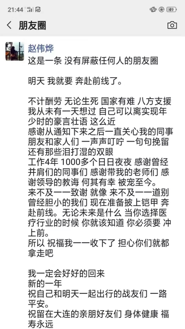 通知下發(fā)后,大連各大醫(yī)院醫(yī)護(hù)人員紛紛主動(dòng)請(qǐng)纓:“只要被需要,義無反顧,放心吧主任,我強(qiáng)壯”“主任,我也可以去武漢,等待您的派遣”“一切聽從組織安排”“需要我們的時(shí)候到了,沒有硝煙的戰(zhàn)場(chǎng)需要我們,我自愿加入抗擊疫情的隊(duì)伍”……醫(yī)院微信群里被自愿報(bào)名聲刷屏。