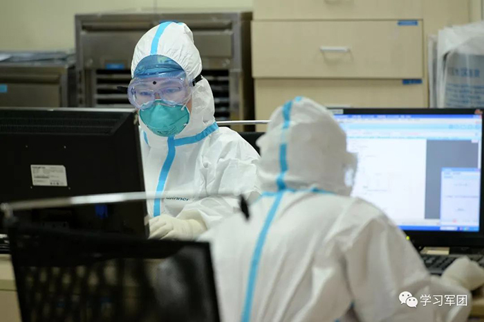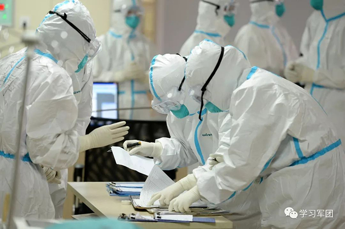 1月27日上午,海軍軍醫(yī)大學(xué)醫(yī)療隊醫(yī)護(hù)人員在漢口醫(yī)院重癥監(jiān)護(hù)室對新型冠狀病毒感染的肺炎患者進(jìn)行救治。醫(yī)護(hù)人員認(rèn)真記錄醫(yī)療文書,執(zhí)行醫(yī)囑。解放軍報記者范顯海攝