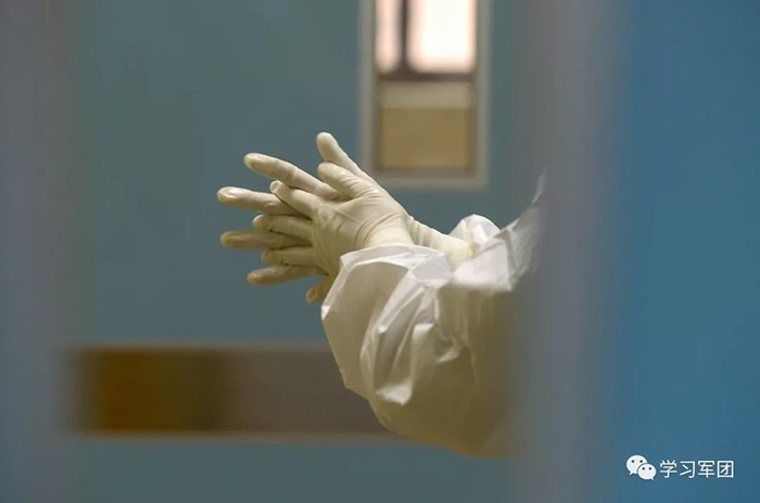 1月27日上午,海軍軍醫(yī)大學(xué)醫(yī)療隊醫(yī)護(hù)人員在漢口醫(yī)院重癥監(jiān)護(hù)室對新型冠狀病毒感染的肺炎患者進(jìn)行救治。穿好防護(hù)服的醫(yī)護(hù)人員在進(jìn)入重癥監(jiān)護(hù)室前洗手消毒。解放軍報記者范顯海攝