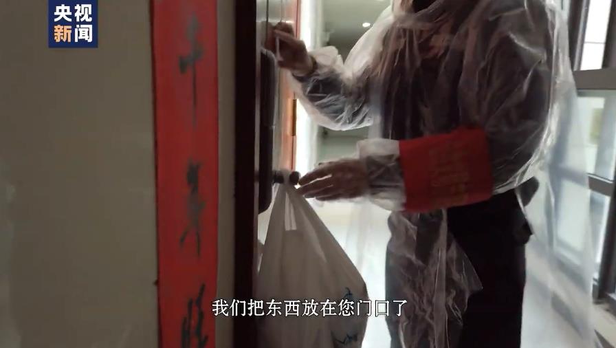 為了進(jìn)一步保護(hù)居民,他們選擇把代買的生活用品放在門口,待他們走后由居民自取的方式,減少居民的風(fēng)險(xiǎn)。