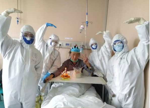 易老先生對(duì)我們說(shuō):“你們讓我度過(guò)了一個(gè)別開生面,永生難忘的76歲壽誕,讓我重拾戰(zhàn)勝病毒的信心。雖然你們穿著防護(hù)服,戴著面罩,看不清你們的臉,但我相信你們都是最美的白衣天使?!?/p>