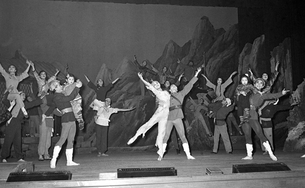 1973年2月10日,日本松山芭蕾舞團(tuán)的演員和中國(guó)舞劇團(tuán)的演員,在北京天橋劇場(chǎng)同臺(tái)演出《紅色娘子軍》。 新華社記者王景英攝