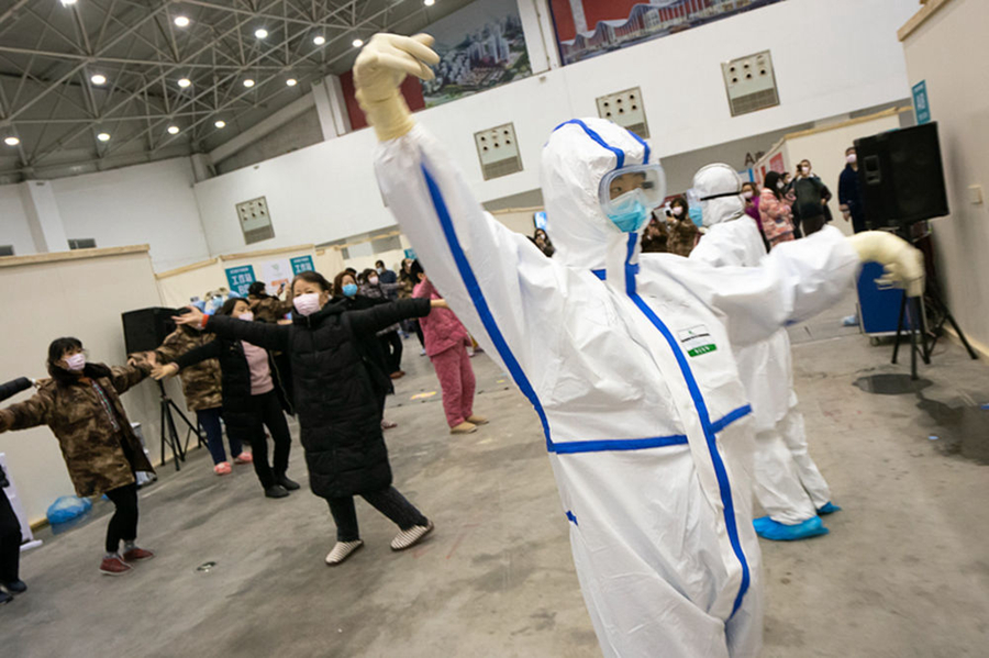 在武漢客廳方艙醫(yī)院,就算隔著厚厚霧氣的防護鏡,我依然被眼前景象深深打動:病人相互加油鼓勁,打拳的、拼魔方的、跳廣場舞的…他們有人呼吸艱難,喘著粗氣,卻也努力伸展,露出生命本來的頑強模樣。