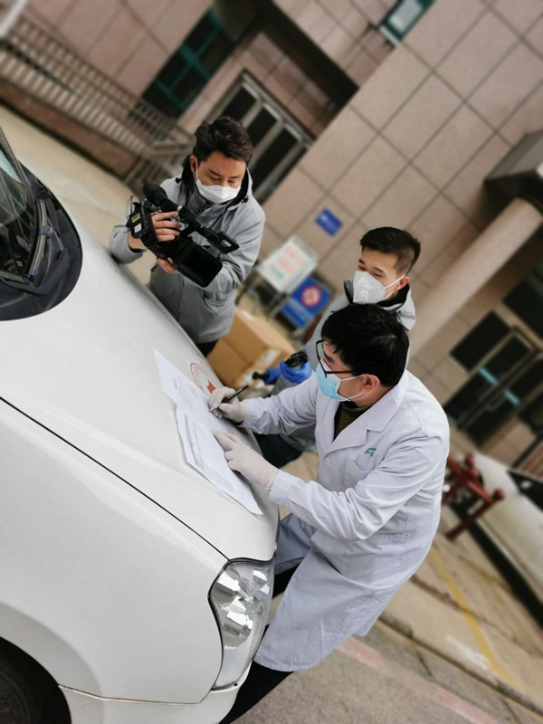 中央電視臺國際頻道跟拍志愿者給四醫(yī)院和兒童醫(yī)院分配物資,醫(yī)生正在簽字確認(rèn)。