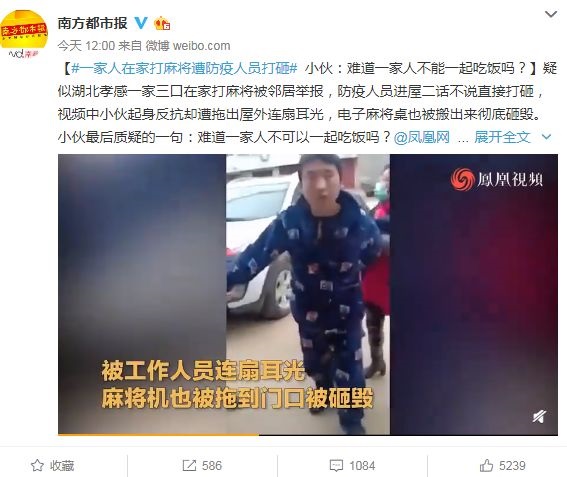 比如,一家三口在家里圍桌打麻將,突然有防疫工作人員進(jìn)來(lái),不由分說開始打砸,一位年輕人表示不服,竟被連抽幾個(gè)耳光;一位中年男子下樓買菜,進(jìn)小區(qū)時(shí)拒絕登記,與工作人員產(chǎn)生沖突,最終被幾名工作人員摁倒在地;一位東北大娘在外溜達(dá)時(shí)沒戴口罩,與社區(qū)干部發(fā)生沖突,甚至拳腳相加,最終被戴上手銬抓進(jìn)警車……