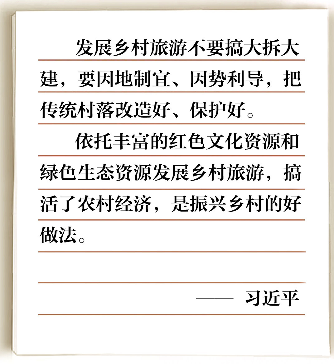 依托豐富的紅色文化資源和綠色生態(tài)資源發(fā)展鄉(xiāng)村旅游,搞活了農(nóng)村經(jīng)濟,是振興鄉(xiāng)村的好做法。