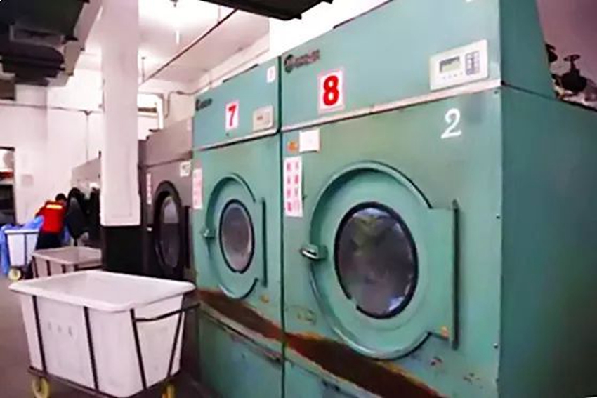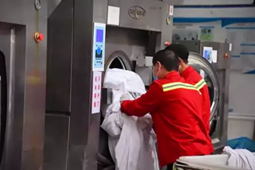 一套臥具要經(jīng)過(guò)11道洗滌消毒工序,過(guò)程中設(shè)備會(huì)自動(dòng)加熱,溫度逐步加熱至80攝氏度,在這樣的恒定高溫下要足足轉(zhuǎn)洗約50分鐘。