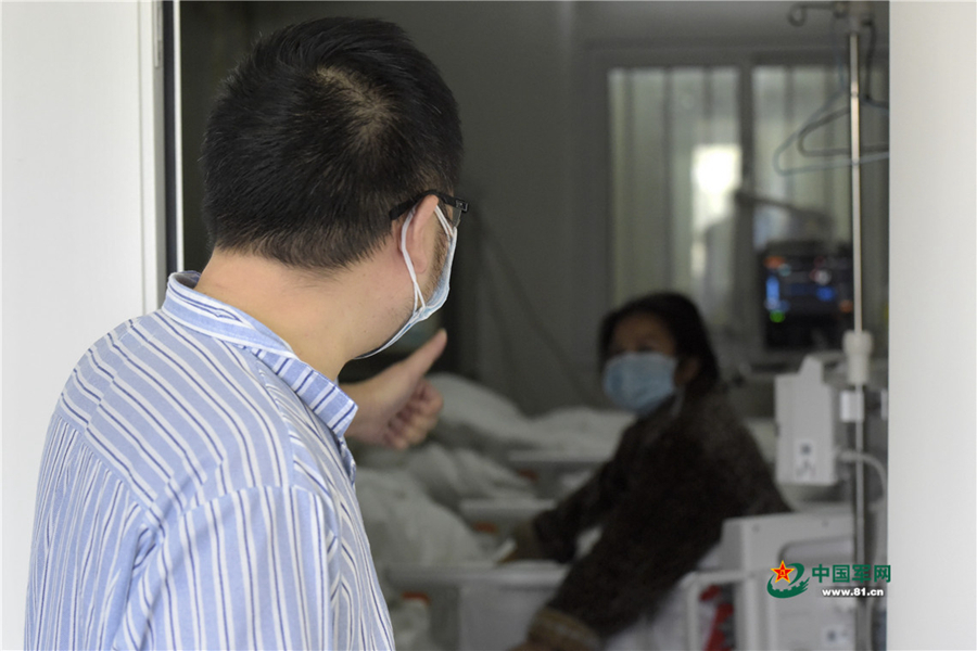 住院期間,萬先生為其他患者加油鼓勁。中國軍網(wǎng)記者范顯海 攝