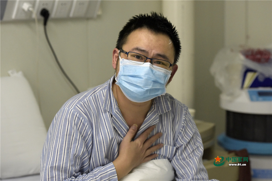 萬(wàn)先生說(shuō)他對(duì)醫(yī)護(hù)人員的感激發(fā)自?xún)?nèi)心。中國(guó)軍網(wǎng)記者范顯海 攝