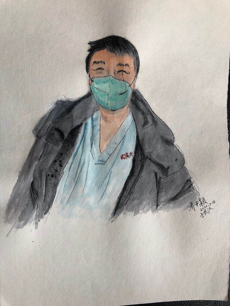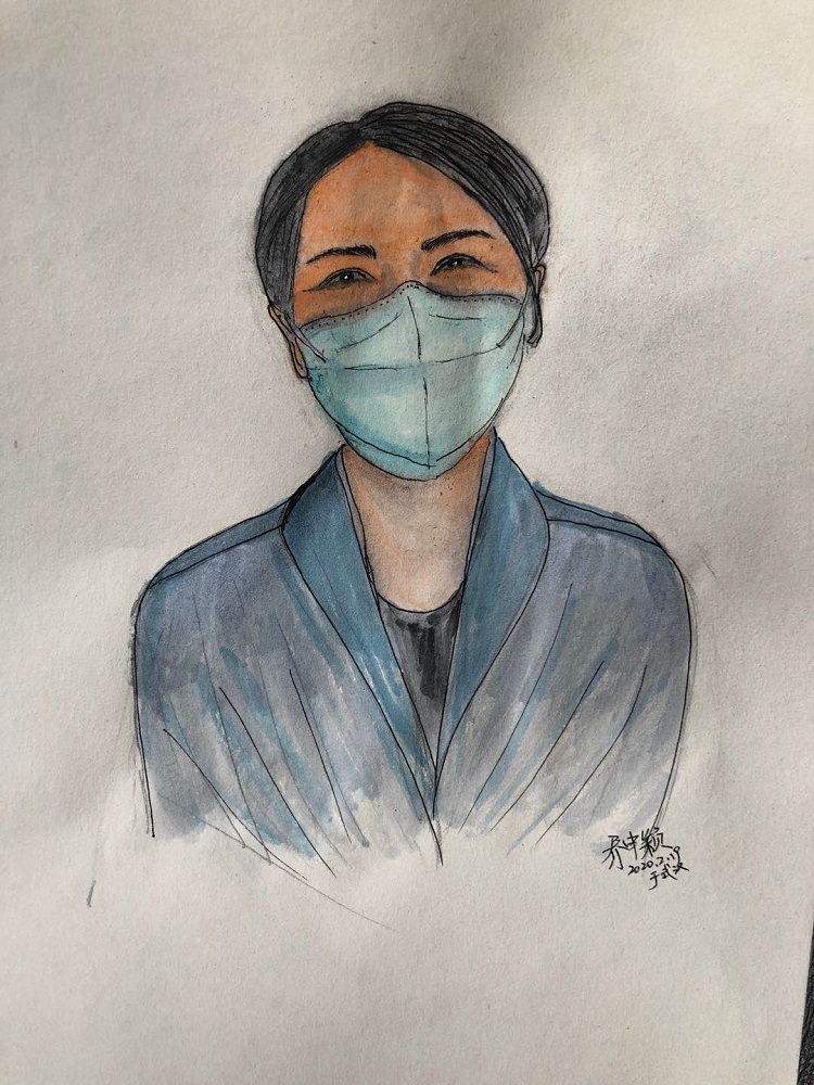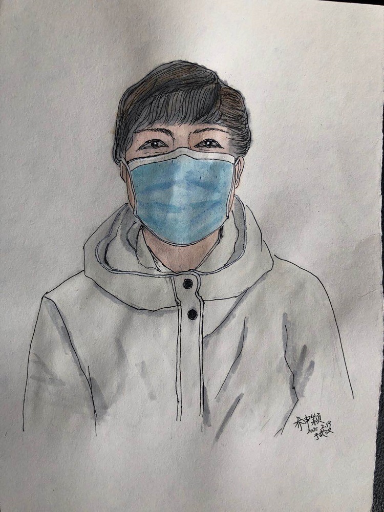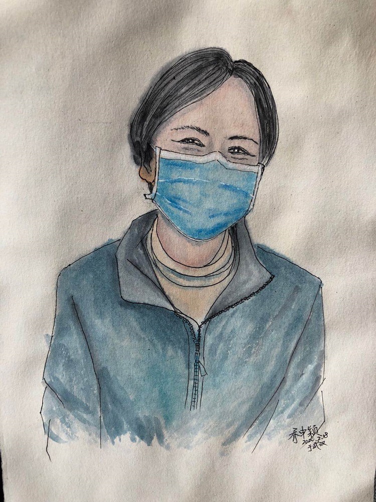 剛開始就是正常的寫稿拍視頻,隨著時(shí)間的推移,就特別想畫畫。這個(gè)城市里充滿了觸動心靈的瞬間,可能是一個(gè)笑臉,可能是一個(gè)手勢。我總覺得光是寫下來、拍下來,還遠(yuǎn)遠(yuǎn)不夠,只有把它畫下來,才真正能把我那一刻的感動也一起收藏起來。當(dāng)時(shí)武漢根本買不到顏料,我請同事幫忙從北京帶過來,2月16號的時(shí)候開始畫。第一個(gè)想到的就是采訪過的醫(yī)護(hù)人員的笑臉。因?yàn)榇蠹叶急赖煤芫o,好多醫(yī)護(hù)人員采訪中說著說著就哭了。雖然對采訪來說可能是件好事,但我總感覺很愧疚,覺得為個(gè)采訪讓人又難過一次。后來就形成一個(gè)習(xí)慣,每次我都要問一個(gè)問題:今天有沒有開心的事呀?或者說:咱換個(gè)話題,說點(diǎn)高興的!他們給了我各種各樣的答案,但是不管是為什么高興,那一刻他們的笑容都特別燦爛特別美好。所以我把他們的笑畫了下來,希望更多的人能看到,能從中汲取力量。