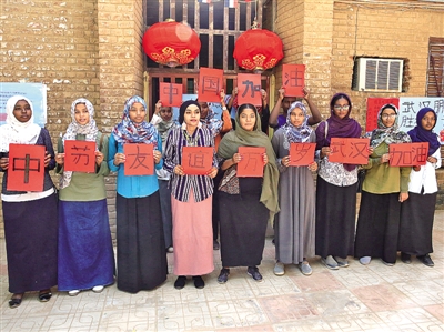 2月25日,在蘇丹喀土穆大學(xué),數(shù)十名蘇丹喀土穆大學(xué)中文系的學(xué)生參加中國(guó)文化展覽活動(dòng),一起為中國(guó)抗擊疫情打氣。新華社發(fā)