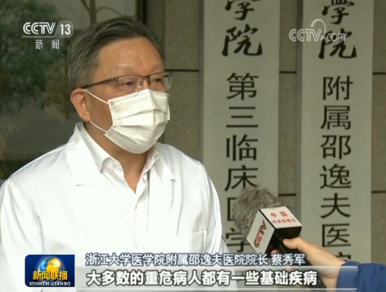 浙江大學(xué)醫(yī)學(xué)院附屬邵逸夫醫(yī)院院長 蔡秀軍:大部分的重危病人都有一些基礎(chǔ)疾病,所以我們一人一方案提高他搶救的成功率,舉行了多次的網(wǎng)絡(luò)的遠程會診,整合前方和后方的醫(yī)療資源,使治療方案更加科學(xué)、更加合理。