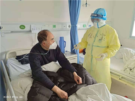 兩位女護(hù)士抬著笨重的大箱子吃力爬樓梯,年過半百的他二話不說接過箱子就走;老年男性病患在床上小便,他連忙搶過護(hù)士手中的便盆說“我來我來”;重癥患者不配合治療,他不厭其煩地開導(dǎo)鼓勵(lì)……提起任小寶,火神山醫(yī)院感染一科二病區(qū)的醫(yī)護(hù)人員幾乎異口同聲,“既體貼隊(duì)員又愛護(hù)病患,因?yàn)橛兴?,這個(gè)隊(duì)伍才這么有活力與朝氣?!痹陉?duì)員們的眼中,任小寶既是可親可敬的“寶哥”,亦是攻堅(jiān)克難的專家!
