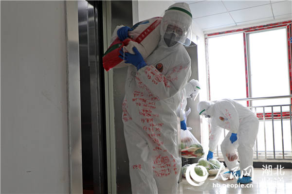 為滿足居民日常生活所需,代睿和隊(duì)員們騎著三輪車,按照物資清單和防護(hù)服上的記錄,一樣一樣地采購(gòu),平均每天要運(yùn)送100余份物資,訂購(gòu)的大米、各類水果,一趟趟跑、一袋袋扛。密不透風(fēng)的防護(hù)服內(nèi),早已渾身濕透,汗從防護(hù)服的袖子直往外流。