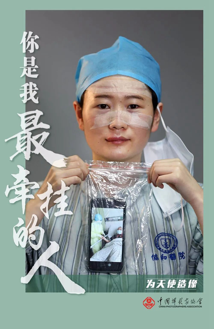 盡管臉上的防護壓痕依舊明顯,盡管貼在面龐上各種防護膠墊未及撕掉,盡管有長期防護留下的些許傷痕,但笑稱“太丑了”的他們,依舊會以肅穆的表情,通過影像隔空與患者心靈對話,為患者真誠祈福。