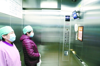 昨天,在海淀醫(yī)院,醫(yī)務人員搭乘語音電梯。 記者 饒強攝