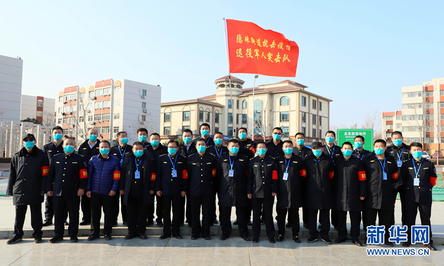 1月31日,青島西海岸新區(qū)抗擊疫情退役軍人突擊隊(duì)在隱珠文化廣場進(jìn)行誓師動員。 新華社發(fā)(于長波 攝)