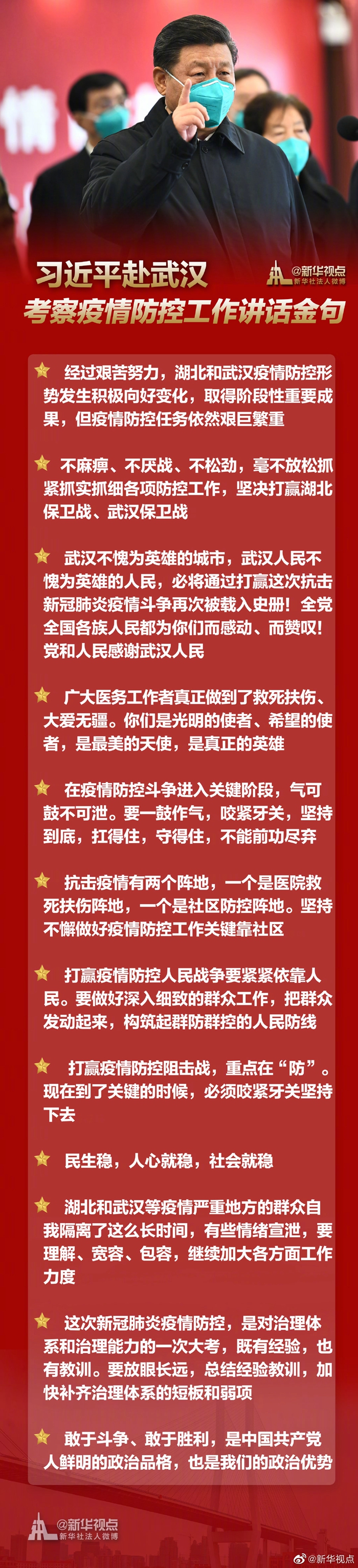 習(xí)近平赴武漢考察疫情防控工作講話金句