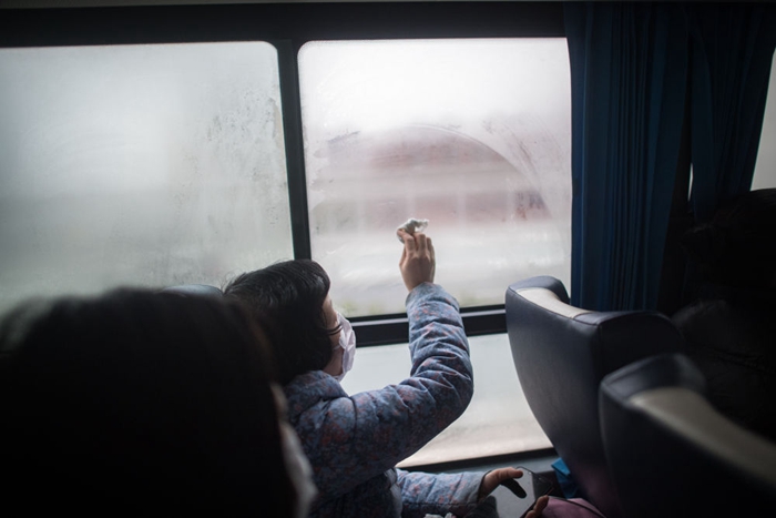 大巴駛過空曠的街道