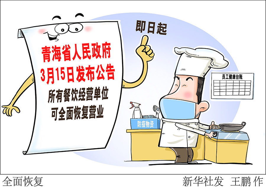 新華社西寧3月16日電(記者央秀達(dá)珍)青海省人民政府15日發(fā)布公告稱,全省所有餐飲經(jīng)營單位(含酒店、餐館、早餐店、夜宵店等),即日起可全面恢復(fù)營業(yè)。