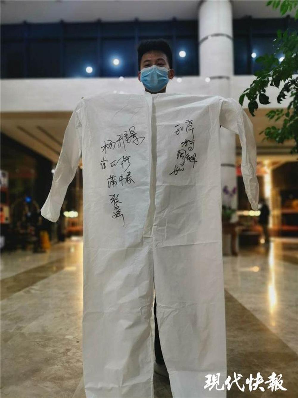 “其實他們都比我大,叫我強哥都不敢應(yīng)?!标悘婌t腆地笑著。陳強還展示了一件特殊的防護服,上面寫滿了他接送的醫(yī)護人員名字?!拔蚁M词顾麄冏吡?,我也能記得他們?!?/p>