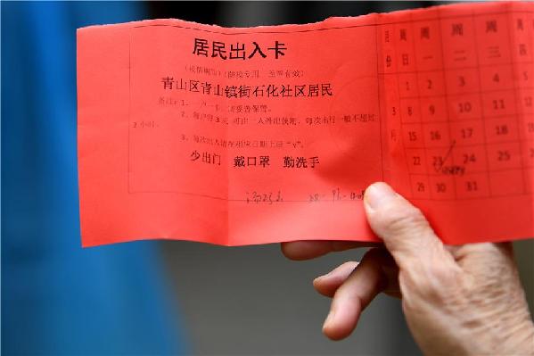 武漢市青山區(qū)青山鎮(zhèn)街石化社區(qū)的居民出入卡。