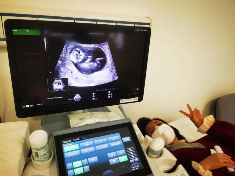 圖為北京天壇醫(yī)院袁磊愛人做B超檢查。