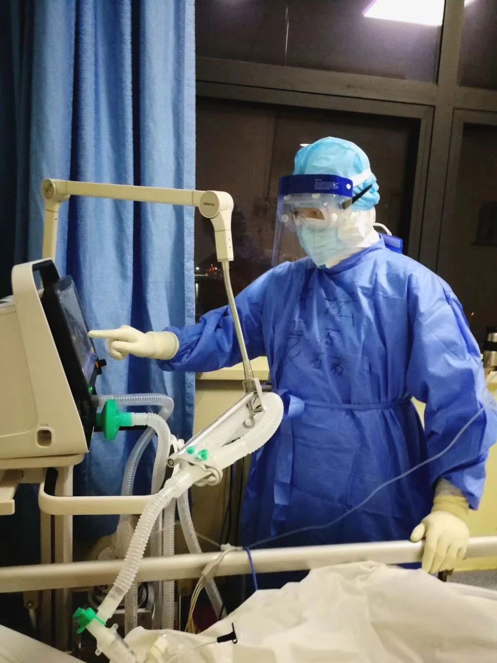 圖為北京天壇醫(yī)院援湖北醫(yī)療隊袁磊在工作中。