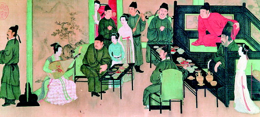 隋唐直至五代十國時期,合餐的趨勢更為明顯。大家圍坐飲食,但食物還是彼此分明,餐具也是成套分配,令人想到日本的“定食”。