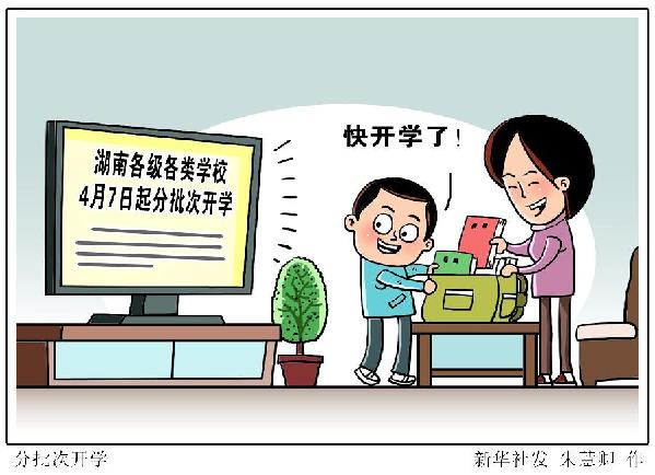新華社長沙3月28日電(記者袁汝婷)湖南省教育廳27日晚通報(bào),經(jīng)湖南省委、省政府同意,全省高三年級(jí)、初三年級(jí)于4月7日開學(xué)。之后,湖南各市州根據(jù)本地疫情情況,按照中學(xué)其他年級(jí)、小學(xué)、幼兒園的順序,明確轄區(qū)各縣市區(qū)中小學(xué)其他年級(jí)和幼兒園錯(cuò)時(shí)錯(cuò)峰開學(xué)時(shí)間。高校在其所在城市的中小學(xué)基本開學(xué)后開學(xué)。
