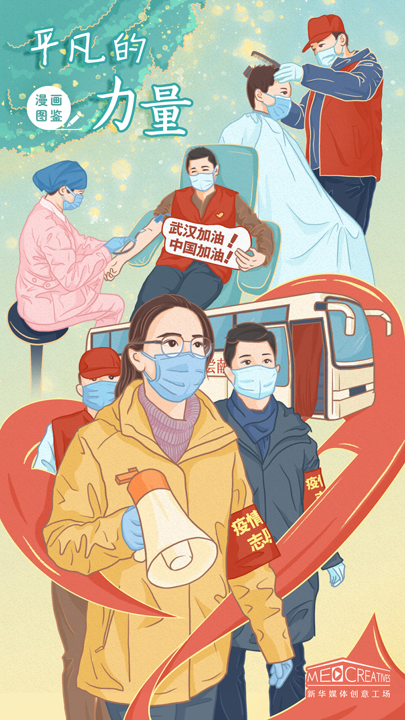 免費為醫(yī)護(hù)人員烹飪盒飯的“雨衣妹妹”劉仙、有求必應(yīng)的湯紅秋及美德志愿者聯(lián)盟……一個個俠肝義膽的故事廣為流傳,一位位無私奉獻(xiàn)的凡人成為網(wǎng)紅。無數(shù)力量匯集、無數(shù)暖流涌動,穿過厚重的隔離、封閉的圍欄,為這座城市驅(qū)走黑暗、帶來希望。