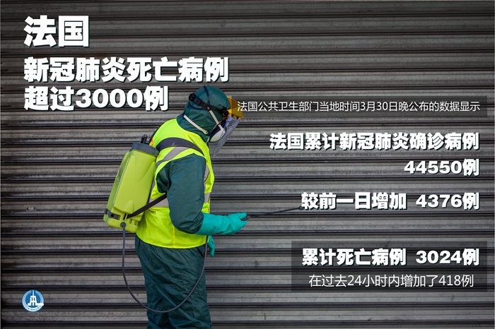 新華社巴黎3月30日電(記者陳晨)法國公共衛(wèi)生部門30日晚公布的數(shù)據(jù)顯示,法國累計新冠肺炎確診病例44550例,較前一日增加4376例;累計死亡病例3024例,在過去24小時內(nèi)增加了418例。