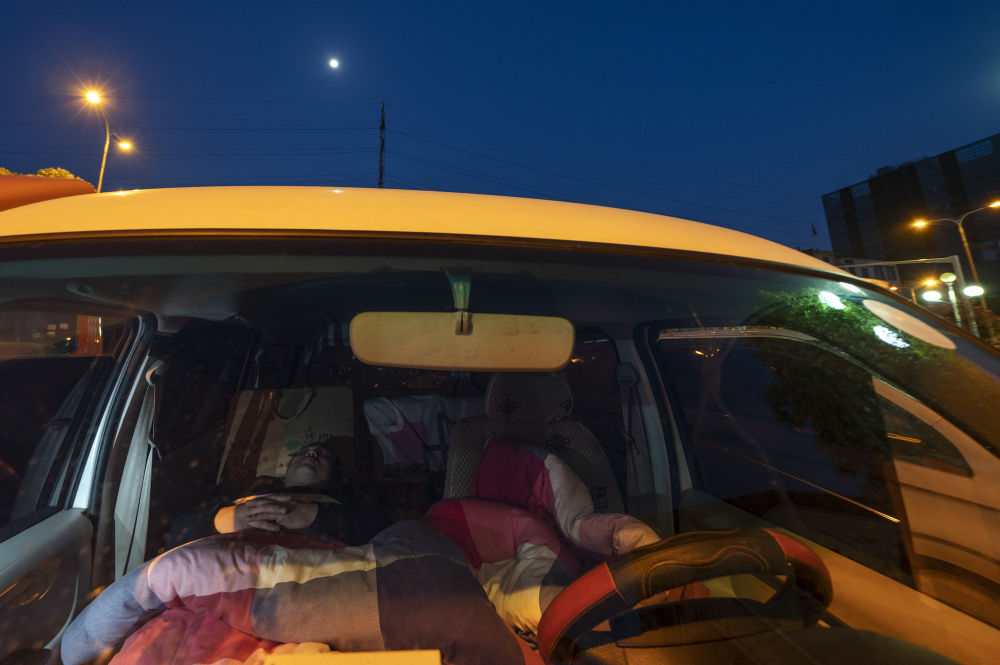 ↑3月7日,入夜之后,馬增辰在自己的面包車上進(jìn)入了夢鄉(xiāng)。此時(shí),一輪明月爬上了半空。