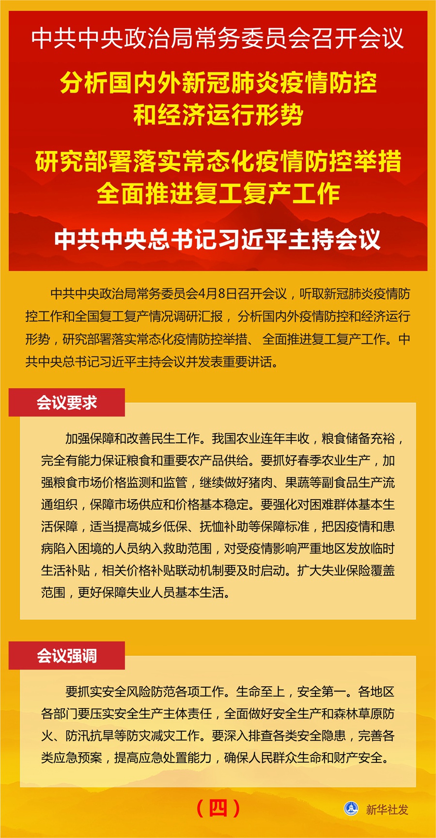 圖表:中共中央政治局常務(wù)委員會(huì)召開(kāi)會(huì)議 分析國(guó)內(nèi)外新冠肺炎疫情防控和經(jīng)濟(jì)運(yùn)行形勢(shì) 研究部署落實(shí)常態(tài)化疫情防控舉措全面推進(jìn)復(fù)工復(fù)產(chǎn)工作 中共中央總書記習(xí)近平主持會(huì)議(四) 新華社發(fā)