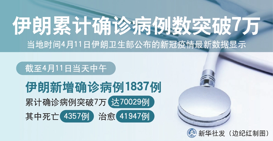 新華社德黑蘭4月11日電(記者陳霖)伊朗衛(wèi)生部11日公布的新冠疫情最新數(shù)據(jù)顯示,截至當(dāng)天中午,伊朗新增確診病例1837例,累計(jì)確診病例突破7萬(wàn),達(dá)70029例,其中死亡4357例,重癥3987例,治愈41947例。