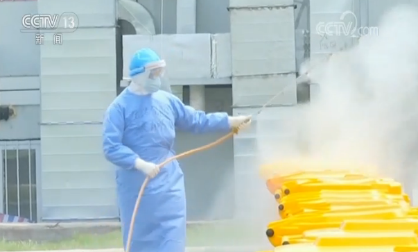 下午3點(diǎn),張鵬飛帶著隊(duì)員將3條210米長(zhǎng)的醫(yī)務(wù)人員走廊再次進(jìn)行洗消作業(yè)。