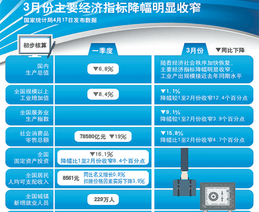前3月國內(nèi)生產(chǎn)總值同比下降,3月份主要經(jīng)濟指標呈現(xiàn)回升勢頭