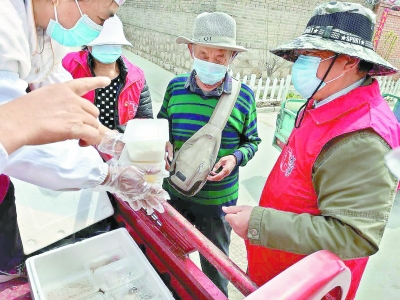 永寧鎮(zhèn)孔化營村,工作人員正向老人分發(fā)當(dāng)日午飯。